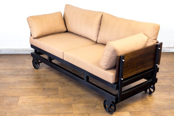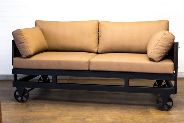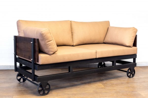 Дизайнерский диван презентабельного вида в стиле Лофт на винтажных колесах.