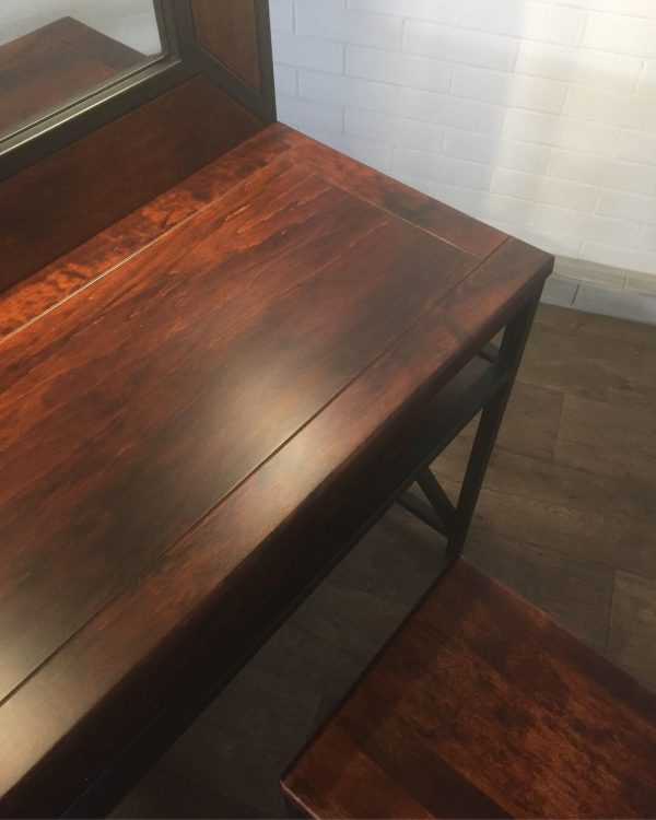 Выполнен из массива березы + фанера. Металлический каркас в полимерном покрытии.
