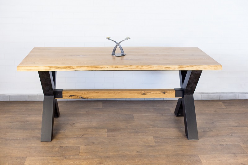 Материал столешницы и перемычки — натуральный дуб толщ. 40мм, подстолье — металл в полимерном покрытии.