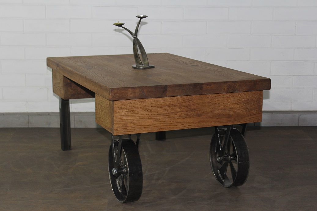 Креативный журнальный столик в стиле Лофт является многофункциональным предметом интерьера (хранение мелких элементов декора, сервировка чая, проведение досуга).